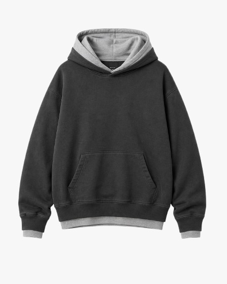 The Jetstream Double-Layer Hoodie stands out with its visually layered design that gives a fresh twist to classic oversized streetwear. The contrast between the darker outer body and lighter inner layer adds dimension, making the hoodie feel more styled and fashion-forward. It is perfect for people who like basics with a little more character and detail. The relaxed fit keeps the look easy and comfortable, while the layered finish adds a premium trend-driven appeal. Whether worn with wide-leg trousers, cargos, or everyday denim, this piece creates a strong outfit with minimal effort. Stylish, modern, and unique in appearance, it is an excellent option for customers who want something different from standard hoodies.